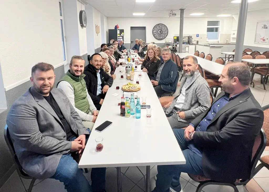 Zum Abschluss des Besuches lud die Moschee zu Cay (Türkischer schwarzer Tee), Gebäck und Kuchen zum interkulturellen Austausch ein. In großer Runde wurde lebhaft über Gemeinsamkeiten und das gute Miteinander diskutiert. Dumann betonte während des interkulturellen Austauschs das Motto der Moschee: „Miteinander statt Gegeneinander“.